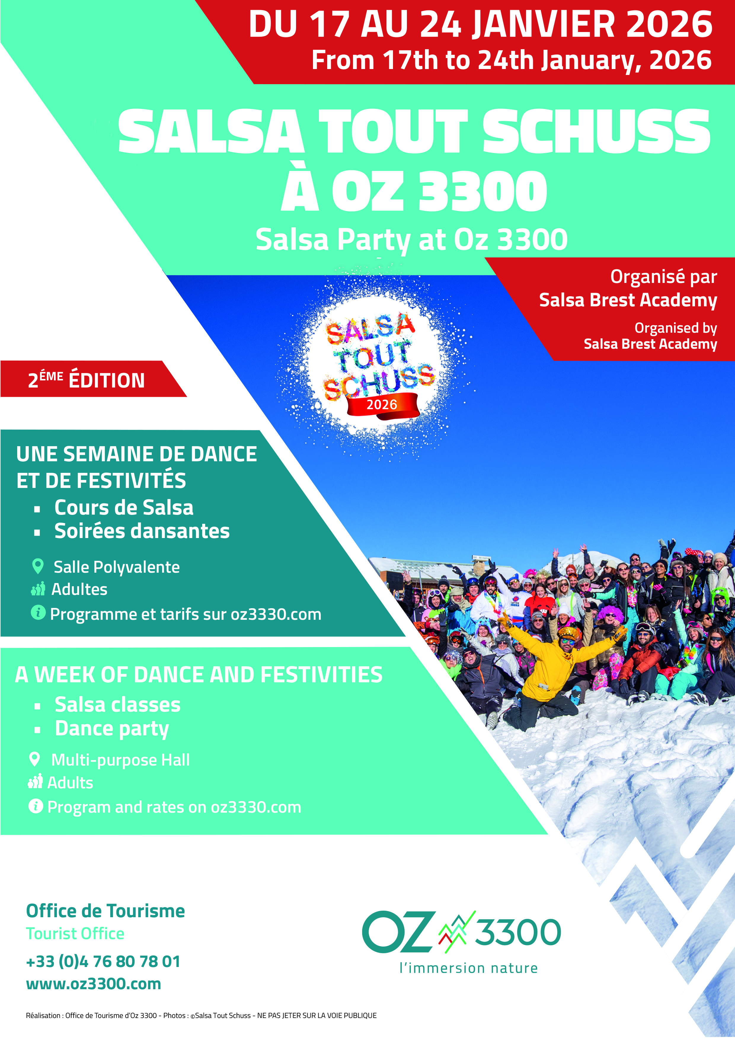 Du 17 au 25 janvier 2026 Salsa tout schuss organisé par Brest Salsa Academy revient à Oz pour la deuxième édition !